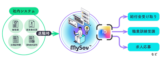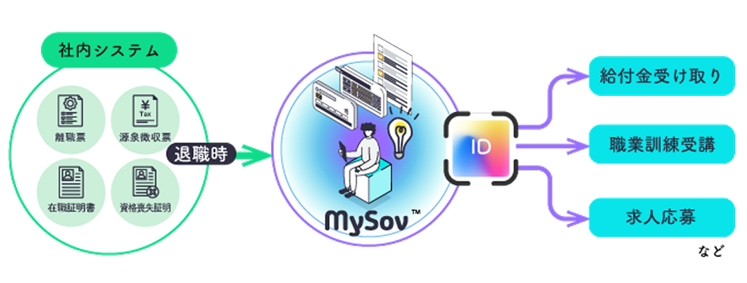 退職時に発行される雇用証明書や在職証明書、健康保険関連書類などをVC(検証可能な資格情報)としてデジタル化することで、退職後の手続きを迅速かつ安全に行えるようになります。